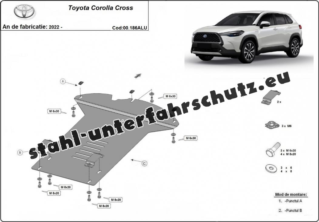 Der Unterfahrschutz ist neu und passt perfekt für alle Toyota Corolla Cross versionen, die zwischen 2022 und 2025 hergestellt wurden. Die Abschirmung schützt: Katalysator Aus Aluminiumblech angefertigt mit einer Stärke von 3 mm. Die Schilde bestehen aus Aluminium, aber die Befestigungshalterungen bestehen aus Stahl. Schrauben, Mutter, Klips - alle Befestigungszubehör sind im Lieferung enthalten. Um mehr Schutz zu bieten gegen Korrosion wird der Unterfahrschutz elektrostatisch besprüht (Pulverbeschichtet) und bei 200o eingebrannt bzw. getrocknet. |