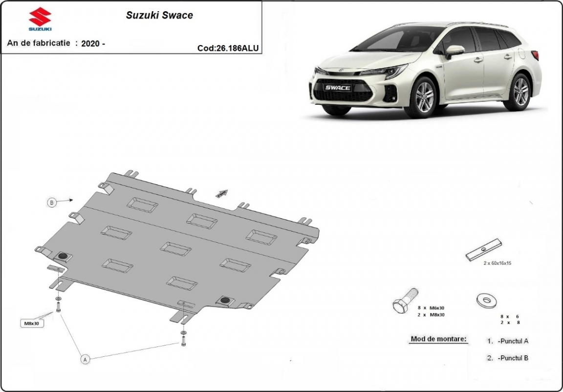 Der Unterfahrschutz ist neu und passt perfekt für alle Suzuki Swace versionen, die zwischen 2020 und 2026 hergestellt wurden. Die Abschirmung schützt: motor, getriebe Aus Aluminiumblech angefertigt mit einer Stärke von 3 mm. Die Schilde bestehen aus Aluminium, aber die Befestigungshalterungen bestehen aus Stahl. Schrauben, Mutter, Klips - alle Befestigungszubehör sind im Lieferung enthalten. Um mehr Schutz zu bieten gegen Korrosion wird der Unterfahrschutz elektrostatisch besprüht (Pulverbeschichtet) und bei 200o eingebrannt bzw. getrocknet. |