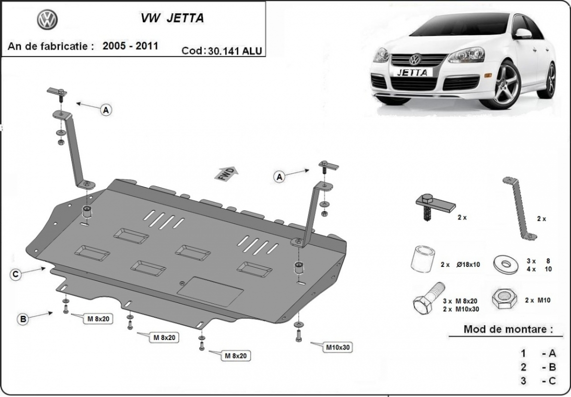 Aluminium Unterfahrschutz für Motor und Getriebe für den VW Jetta (2005-2011)