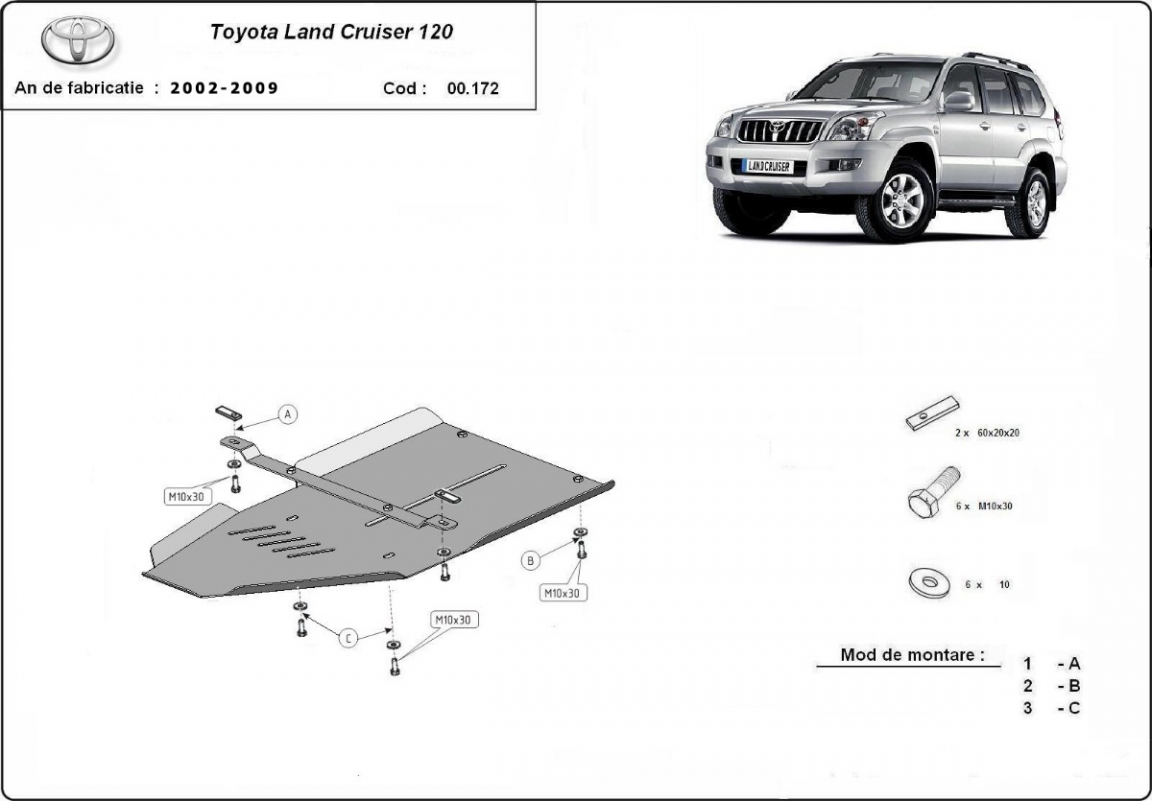 Stahlschutz für Treibstofftank der Marke Toyota Land Cruiser J120 - nur für 5 türer modell (2002-2009)