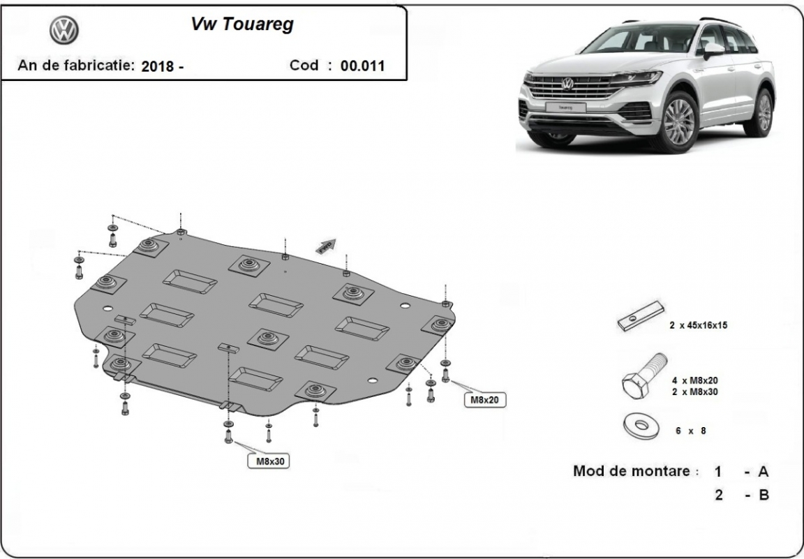 Der Unterfahrschutz ist neu und passt perfekt für alle VW Touareg versionen, die zwischen 2018 und 2026 hergestellt wurden. Die Abschirmung schützt: getriebe Aus Stahlblech angefertigt mit einer Stärke von 2 mm. Schrauben, Mutter, Klips - alle Befestigungszubehör sind im Lieferung enthalten. Um mehr Schutz zu bieten gegen Korrosion wird der Unterfahrschutz elektrostatisch besprüht (Pulverbeschichtet) und bei 200o eingebrannt bzw. getrocknet. |