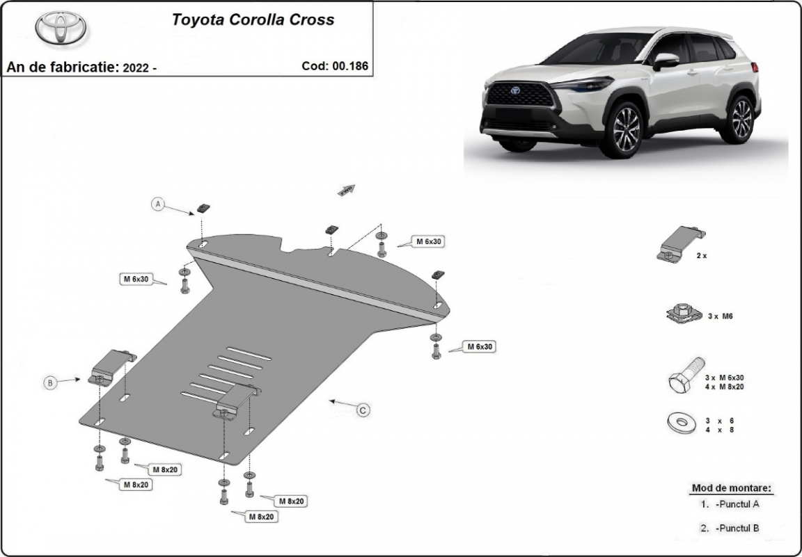 Der Unterfahrschutz ist neu und passt perfekt für alle Toyota Corolla Cross versionen, die zwischen 2022 und 2026 hergestellt wurden. Die Abschirmung schützt: Katalysator Aus Stahlblech angefertigt mit einer Stärke von 2 mm. Schrauben, Mutter, Klips - alle Befestigungszubehör sind im Lieferung enthalten. Um mehr Schutz zu bieten gegen Korrosion wird der Unterfahrschutz elektrostatisch besprüht (Pulverbeschichtet) und bei 200o eingebrannt bzw. getrocknet. |