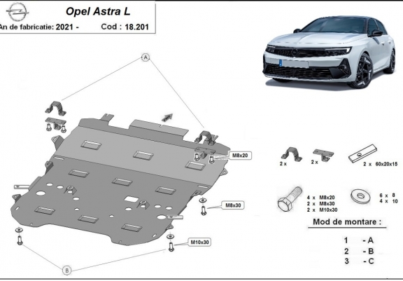 Der Unterfahrschutz ist neu und passt perfekt für alle Opel Astra L versionen, die zwischen 2021 und 2026 hergestellt wurden. Die Abschirmung schützt: motor, getriebe, kühler, vordere stossfänger Aus Stahlblech angefertigt mit einer Stärke von 2 mm. Schrauben, Mutter, Klips - alle Befestigungszubehör sind im Lieferung enthalten. Um mehr Schutz zu bieten gegen Korrosion wird der Unterfahrschutz elektrostatisch besprüht (Pulverbeschichtet) und bei 200o eingebrannt bzw. getrocknet. |
