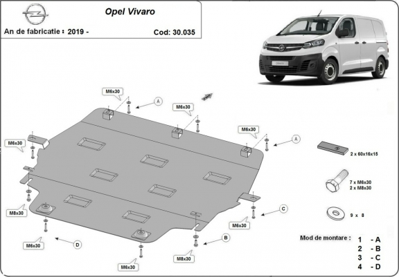 Der Unterfahrschutz ist neu und passt perfekt für alle Opel Vivaro versionen, die zwischen 2019 und 2026 hergestellt wurden. Die Abschirmung schützt: motor, getriebe, kühler Aus Stahlblech angefertigt mit einer Stärke von 2 mm. Schrauben, Mutter, Klips - alle Befestigungszubehör sind im Lieferung enthalten. Um mehr Schutz zu bieten gegen Korrosion wird der Unterfahrschutz elektrostatisch besprüht (Pulverbeschichtet) und bei 200o eingebrannt bzw. getrocknet. |