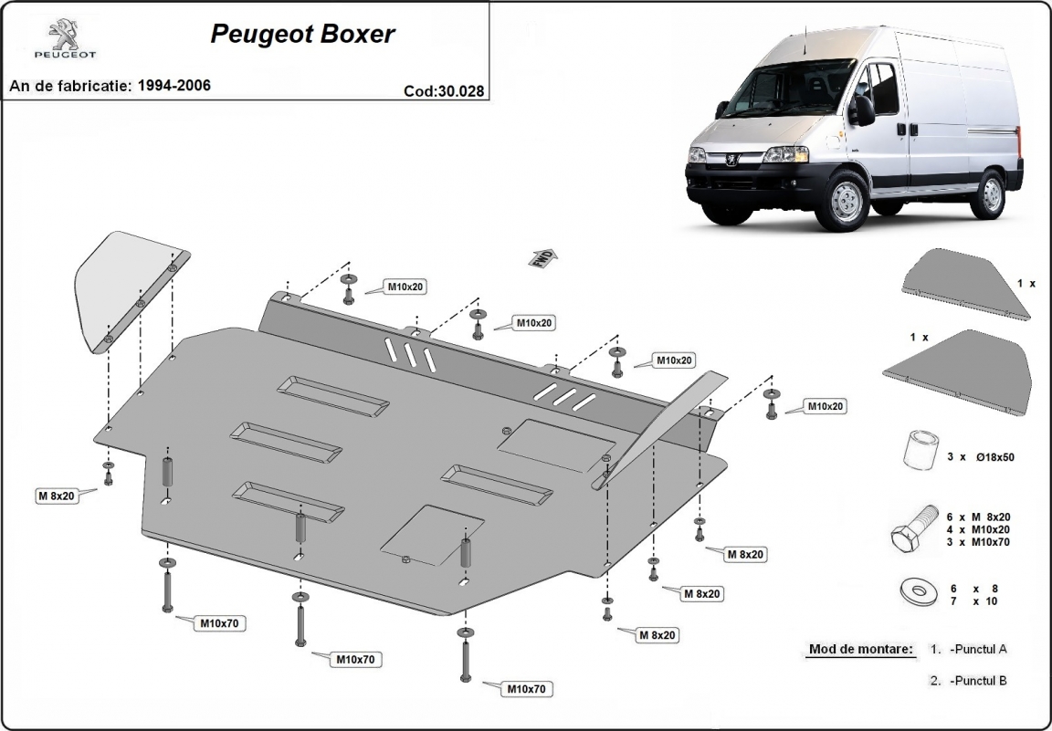 Der Unterfahrschutz ist neu und passt perfekt für alle Peugeot Boxer versionen, die zwischen 1996 und 2006 hergestellt wurden. Die Abschirmung schützt: motor, getriebe, kühler Befügt über ein Fensterchen zur Ölwanne, so dass dessen Entfernung beim Ölwechsel nicht notwendig sein wird. Aus Stahlblech angefertigt mit einer Stärke von 2 mm. Schrauben, Mutter, Klips - alle Befestigungszubehör sind im Lieferung enthalten. Um mehr Schutz zu bieten gegen Korrosion wird der Unterfahrschutz elektrostatisch besprüht (Pulverbeschichtet) und bei 200o eingebrannt bzw. getrocknet. |