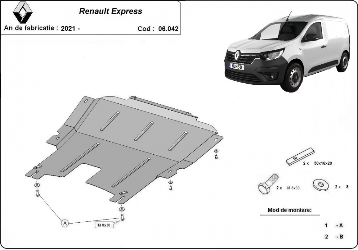 Der Unterfahrschutz ist neu und passt perfekt für alle Renault Express versionen, die zwischen 2021 und 2026 hergestellt wurden. Die Abschirmung schützt: motor, getriebe, kühler Aus Stahlblech angefertigt mit einer Stärke von 2 mm. Schrauben, Mutter, Klips - alle Befestigungszubehör sind im Lieferung enthalten. Um mehr Schutz zu bieten gegen Korrosion wird der Unterfahrschutz elektrostatisch besprüht (Pulverbeschichtet) und bei 200o eingebrannt bzw. getrocknet. |