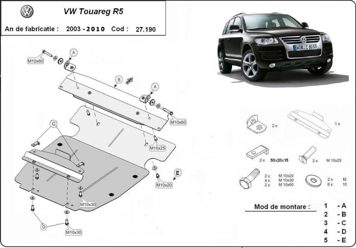 Der Unterfahrschutz ist neu und passt perfekt für alle Volkswagen Touareg 7L versionen, die zwischen 2003 und 2010 hergestellt wurden. Die Abschirmung schützt: motor Aus Stahlblech angefertigt mit einer Stärke von 3 mm. Schrauben, Mutter, Klips - alle Befestigungszubehör sind im Lieferung enthalten. Um mehr Schutz zu bieten gegen Korrosion wird der Unterfahrschutz elektrostatisch besprüht (Pulverbeschichtet) und bei 200o eingebrannt bzw. getrocknet. |