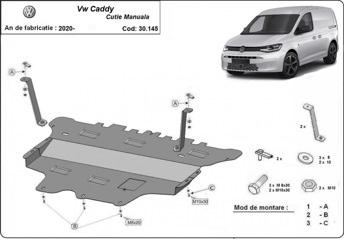 Der Unterfahrschutz ist neu und passt perfekt für alle VW Caddy versionen, die zwischen 2020 und 2026 hergestellt wurden. Die Abschirmung schützt: motor, getriebe, kühler, vordere stossfänger Befügt über ein Fensterchen zur Ölwanne, so dass dessen Entfernung beim Ölwechsel nicht notwendig sein wird. Aus Stahlblech angefertigt mit einer Stärke von 2 mm. Schrauben, Mutter, Klips - alle Befestigungszubehör sind im Lieferung enthalten. Um mehr Schutz zu bieten gegen Korrosion wird der Unterfahrschutz elektrostatisch besprüht (Pulverbeschichtet) und bei 200o eingebrannt bzw. getrocknet. |