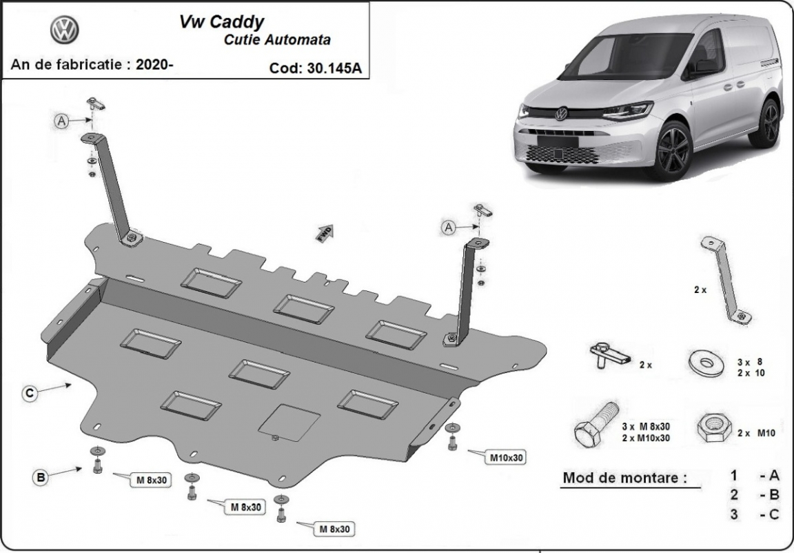Der Unterfahrschutz ist neu und passt perfekt für alle VW Caddy versionen, die zwischen 2020 und 2026 hergestellt wurden. Die Abschirmung schützt: motor, getriebe, kühler, vordere stossfänger Befügt über ein Fensterchen zur Ölwanne, so dass dessen Entfernung beim Ölwechsel nicht notwendig sein wird. Aus Stahlblech angefertigt mit einer Stärke von 2 mm. Schrauben, Mutter, Klips - alle Befestigungszubehör sind im Lieferung enthalten. Um mehr Schutz zu bieten gegen Korrosion wird der Unterfahrschutz elektrostatisch besprüht (Pulverbeschichtet) und bei 200o eingebrannt bzw. getrocknet. |