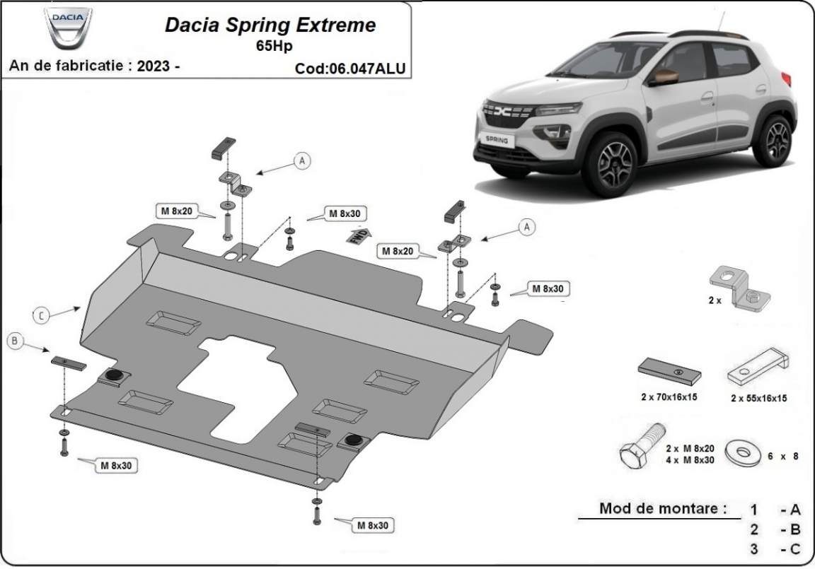Aluminium Unterfahrschutz Dacia Spring Extreme (2023-2026)