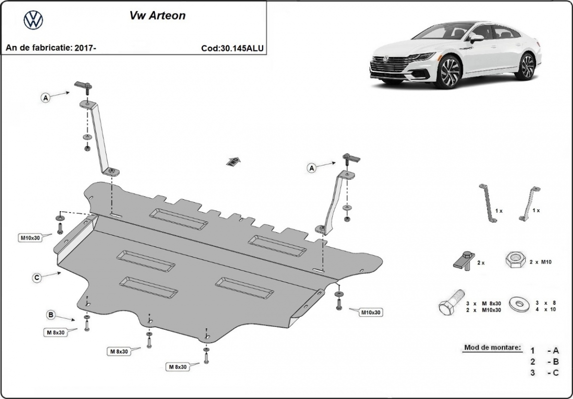 Der Unterfahrschutz ist neu und passt perfekt für alle VW Arteon versionen, die zwischen 2017 und 2026 hergestellt wurden. Die Abschirmung schützt: motor, getriebe, kühler, vordere stossfänger Aus Aluminiumblech angefertigt mit einer Stärke von 3 mm. Die Schilde bestehen aus Aluminium, aber die Befestigungshalterungen bestehen aus Stahl. Schrauben, Mutter, Klips - alle Befestigungszubehör sind im Lieferung enthalten. Um mehr Schutz zu bieten gegen Korrosion wird der Unterfahrschutz elektrostatisch besprüht (Pulverbeschichtet) und bei 200o eingebrannt bzw. getrocknet. |