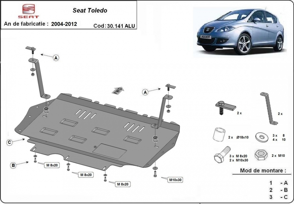 Aluminium Unterfahrschutz für Motor und Getriebe für den Seat Toledo 3 (2004-2012)