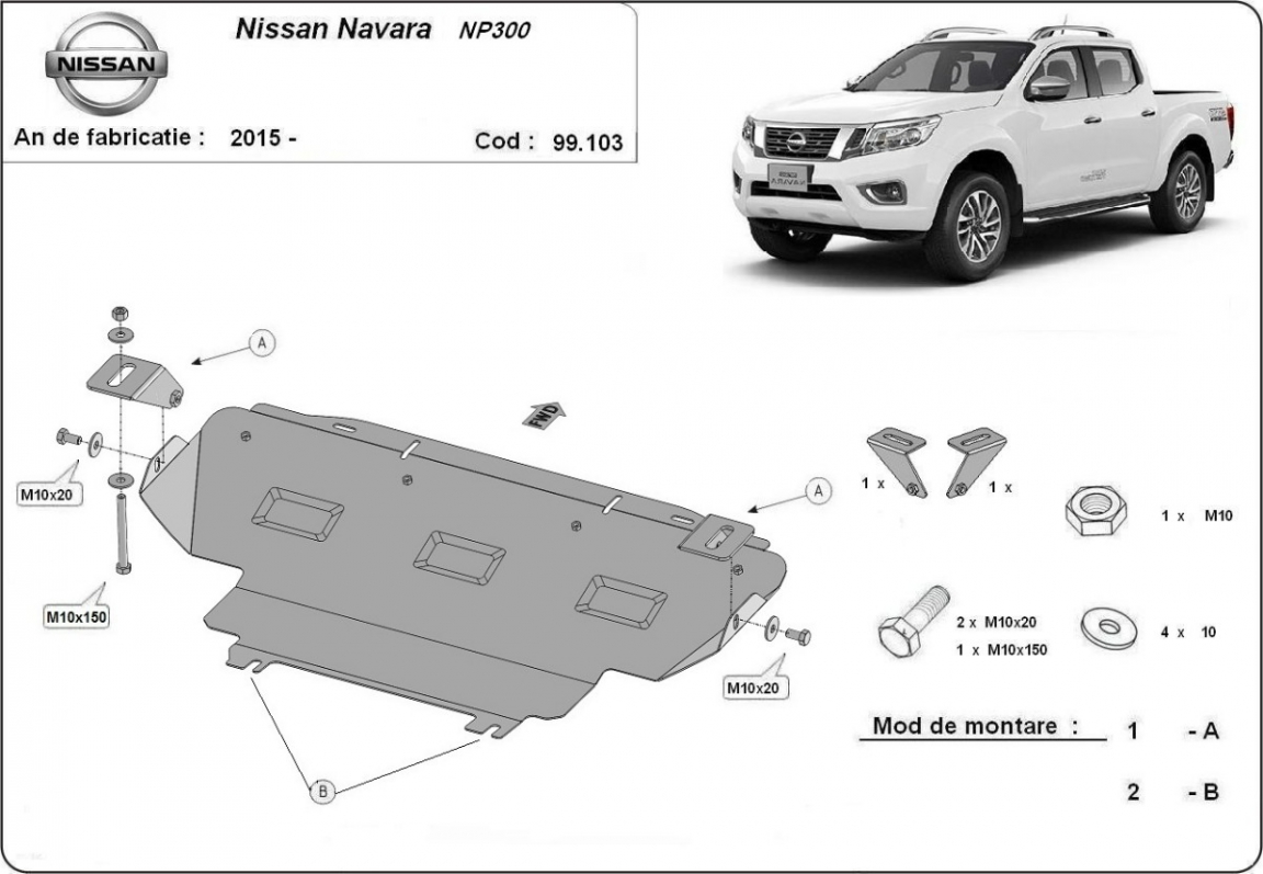 Der Unterfahrschutz ist neu und passt perfekt für alle Nissan Navara NP300 versionen, die zwischen 2015 und 2021 hergestellt wurden. Die Abschirmung schützt: kühler Aus Stahlblech angefertigt mit einer Stärke von 2 mm. Schrauben, Mutter, Klips - alle Befestigungszubehör sind im Lieferung enthalten. Um mehr Schutz zu bieten gegen Korrosion wird der Unterfahrschutz elektrostatisch besprüht (Pulverbeschichtet) und bei 200o eingebrannt bzw. getrocknet. |