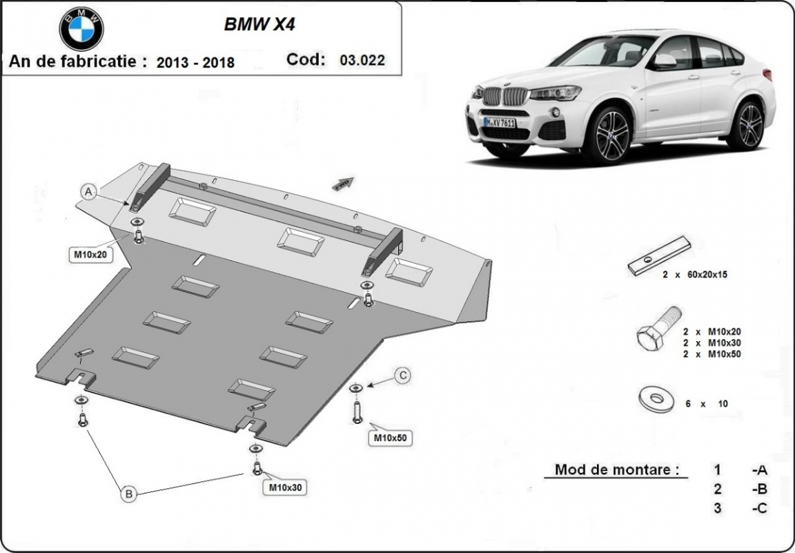 Der Unterfahrschutz ist neu und passt perfekt für alle BMW X4 versionen, die zwischen 2014 und 2018 hergestellt wurden. Die Abschirmung schützt: motor, kühler, vordere stossfänger Aus Stahlblech angefertigt mit einer Stärke von 2 mm. Schrauben, Mutter, Klips - alle Befestigungszubehör sind im Lieferung enthalten. Um mehr Schutz zu bieten gegen Korrosion wird der Unterfahrschutz elektrostatisch besprüht (Pulverbeschichtet) und bei 200o eingebrannt bzw. getrocknet. |