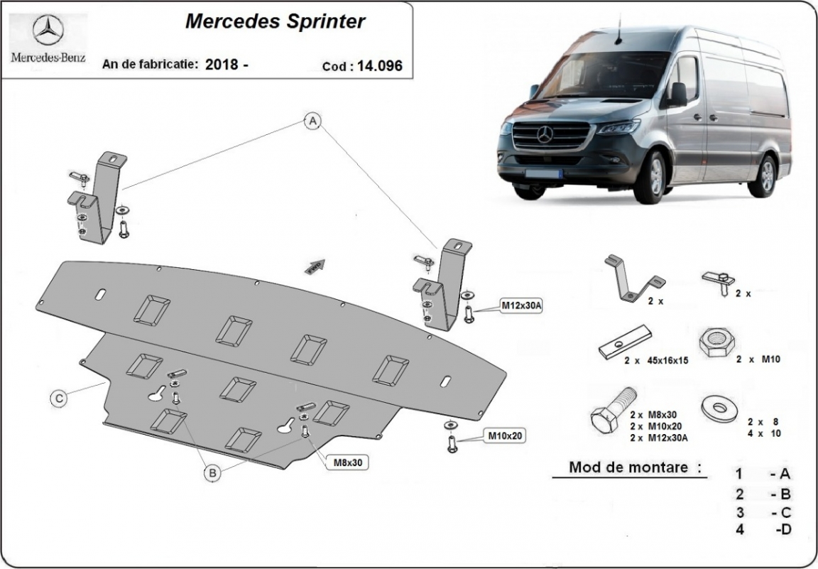 Der Unterfahrschutz ist neu und passt perfekt für alle Mercedes Sprinter versionen, die zwischen 2018 und 2026 hergestellt wurden. Die Abschirmung schützt: motor, kühler, vordere stossfänger Aus Stahlblech angefertigt mit einer Stärke von 2 mm. Schrauben, Mutter, Klips - alle Befestigungszubehör sind im Lieferung enthalten. Um mehr Schutz zu bieten gegen Korrosion wird der Unterfahrschutz elektrostatisch besprüht (Pulverbeschichtet) und bei 200o eingebrannt bzw. getrocknet. |