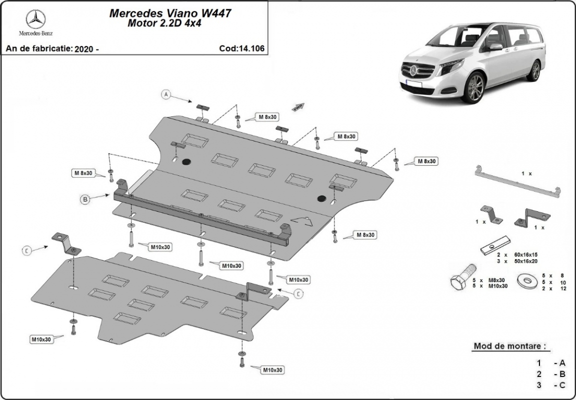 Unterfahrschutz Mercedes Viano W447, 2.2 D, 4x4 (2020-2026)