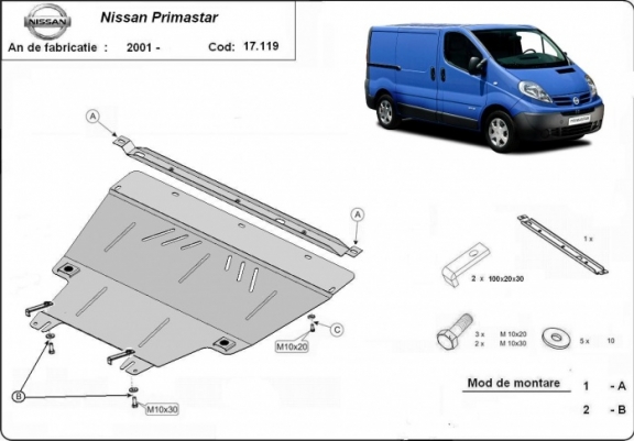 Der Unterfahrschutz ist neu und passt perfekt für alle Nissan Primastar versionen, die zwischen 2001 und 2015 hergestellt wurden. Die Abschirmung schützt: motor, getriebe, kühler Aus Stahlblech angefertigt mit einer Stärke von 2 mm. Schrauben, Mutter, Klips - alle Befestigungszubehör sind im Lieferung enthalten. Um mehr Schutz zu bieten gegen Korrosion wird der Unterfahrschutz elektrostatisch besprüht (Pulverbeschichtet) und bei 200o eingebrannt bzw. getrocknet. |
