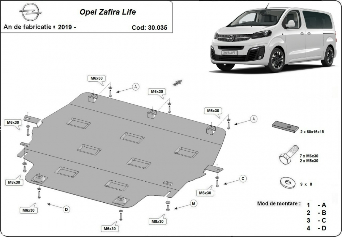 Der Unterfahrschutz ist neu und passt perfekt für alle Opel Zafira Life versionen, die zwischen 2019 und 2026 hergestellt wurden. Die Abschirmung schützt: motor, getriebe, kühler Aus Stahlblech angefertigt mit einer Stärke von 2 mm. Schrauben, Mutter, Klips - alle Befestigungszubehör sind im Lieferung enthalten. Um mehr Schutz zu bieten gegen Korrosion wird der Unterfahrschutz elektrostatisch besprüht (Pulverbeschichtet) und bei 200o eingebrannt bzw. getrocknet. |