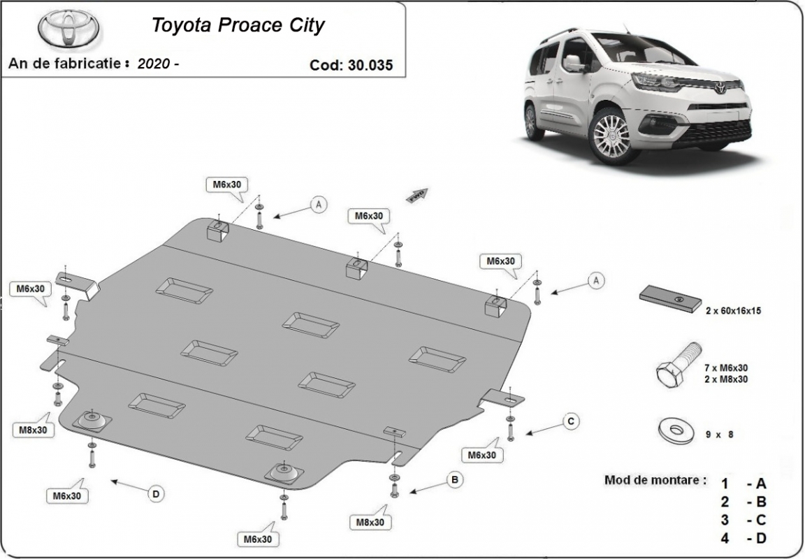 Der Unterfahrschutz ist neu und passt perfekt für den Toyota Proace City mit den folgenden Motor- / Antriebsversionen: - hergestellt zwischen 2020 und 2026. Die Abschirmung schützt: motor, getriebe, kühler Aus Stahlblech angefertigt mit einer Stärke von 2 mm. Schrauben, Mutter, Klips - alle Befestigungszubehör sind im Lieferung enthalten. Um mehr Schutz zu bieten gegen Korrosion wird der Unterfahrschutz elektrostatisch besprüht (Pulverbeschichtet) und bei 200o eingebrannt bzw. getrocknet. |