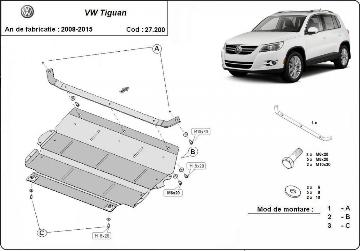 Der Unterfahrschutz ist neu und passt perfekt für alle VW Tiguan versionen, die zwischen 2008 und 2015 hergestellt wurden. Die Abschirmung schützt: motor, getriebe, kühler, vordere stossfänger Aus Stahlblech angefertigt mit einer Stärke von 2 mm. Schrauben, Mutter, Klips - alle Befestigungszubehör sind im Lieferung enthalten. Um mehr Schutz zu bieten gegen Korrosion wird der Unterfahrschutz elektrostatisch besprüht (Pulverbeschichtet) und bei 200o eingebrannt bzw. getrocknet. |