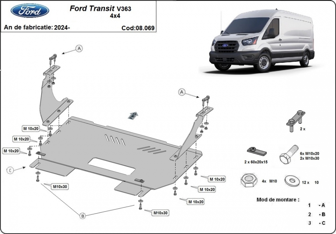 Der Unterfahrschutz ist neu und passt perfekt für alle Ford Transit V363 versionen, die zwischen 2024 und 2026 hergestellt wurden. Die Abschirmung schützt: motor, getriebe, kühler Aus Stahlblech angefertigt mit einer Stärke von 2.5 mm. Schrauben, Mutter, Klips - alle Befestigungszubehör sind im Lieferung enthalten. Um mehr Schutz zu bieten gegen Korrosion wird der Unterfahrschutz elektrostatisch besprüht (Pulverbeschichtet) und bei 200o eingebrannt bzw. getrocknet. |