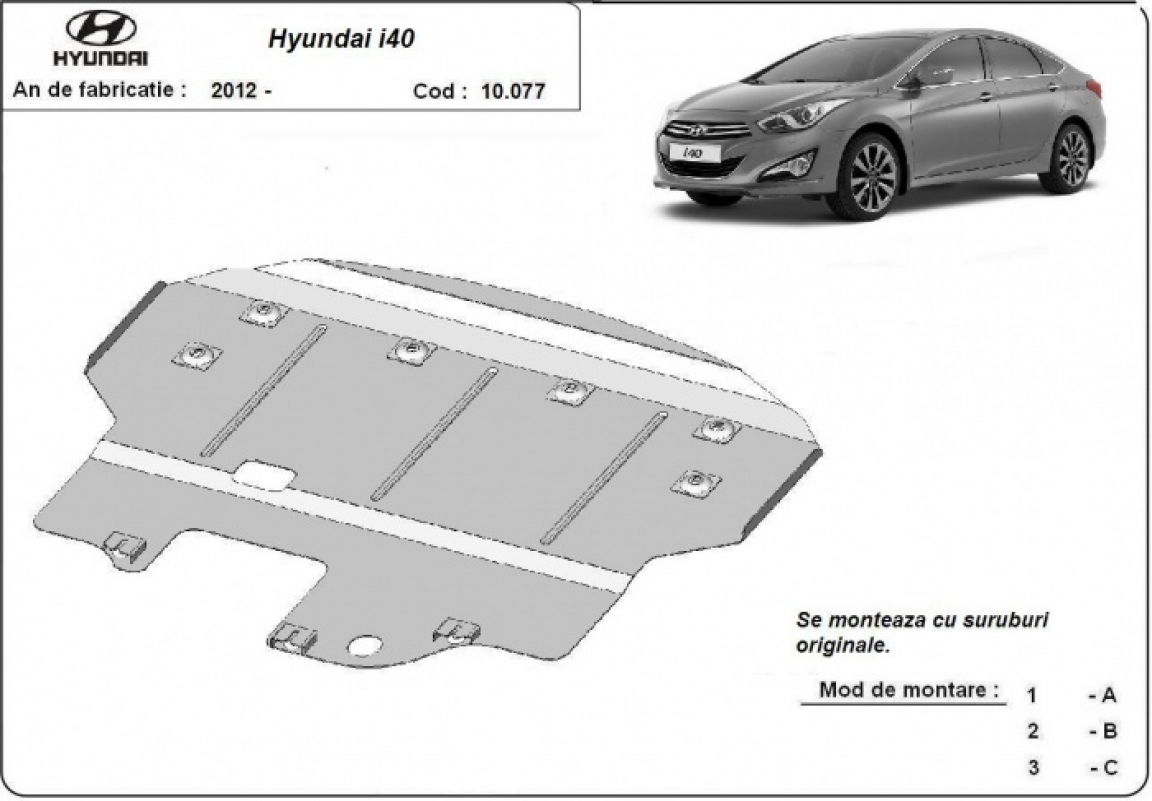 Der Unterfahrschutz ist neu und passt perfekt für alle Hyundai i40 versionen, die zwischen 2011 und 2015 hergestellt wurden. Die Abschirmung schützt: motor, getriebe Aus Stahlblech angefertigt mit einer Stärke von 2 mm. Schrauben, Mutter, Klips - alle Befestigungszubehör sind im Lieferung enthalten. Um mehr Schutz zu bieten gegen Korrosion wird der Unterfahrschutz elektrostatisch besprüht (Pulverbeschichtet) und bei 200o eingebrannt bzw. getrocknet. |