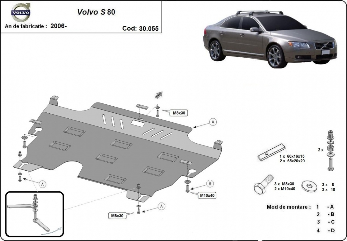 Der Unterfahrschutz ist neu und passt perfekt für alle Volvo S80 versionen, die zwischen 2006 und 2016 hergestellt wurden. Die Abschirmung schützt: motor, getriebe Aus Stahlblech angefertigt mit einer Stärke von 2 mm. Schrauben, Mutter, Klips - alle Befestigungszubehör sind im Lieferung enthalten. Um mehr Schutz zu bieten gegen Korrosion wird der Unterfahrschutz elektrostatisch besprüht (Pulverbeschichtet) und bei 200o eingebrannt bzw. getrocknet. |