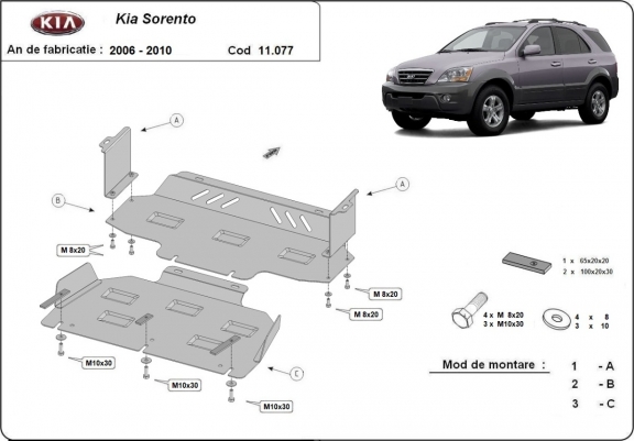 Unterfahrschutz für Getriebe und Differential aus Kia Sorento (2006-2009)