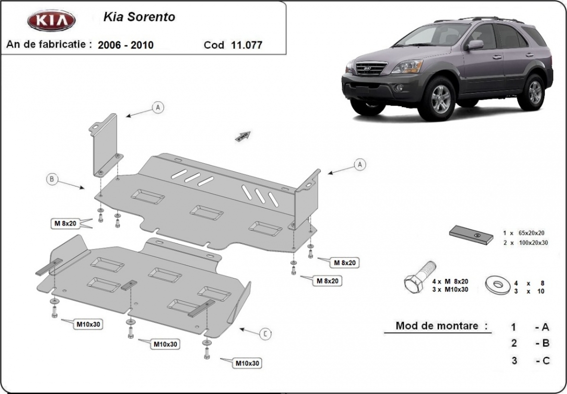 Unterfahrschutz für Motor und kühler aus Stahl für Kia Sorento (2006-2009)