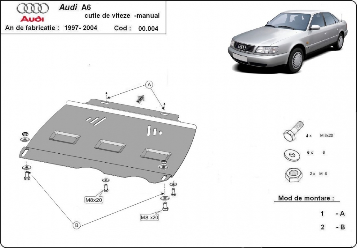 Unterfahrschutz aus Stahl für Automatikgetriebe der Marke Audi A6 (1997-2004)